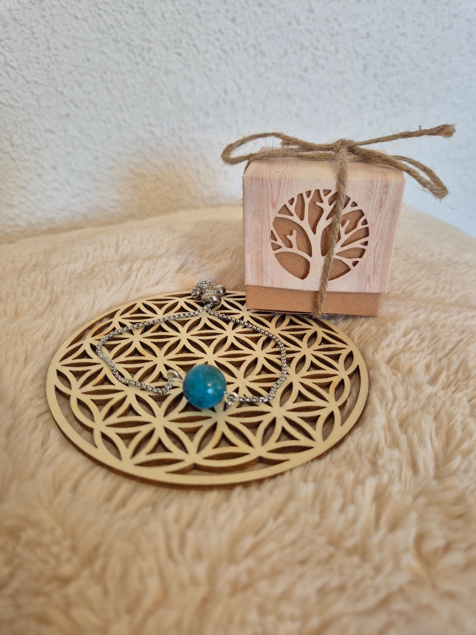 Symbole de communication et d’inspiration, l’apatite accompagne celui qui la porte avec légèreté et élégance, transformant ce bijou en un talisman de créativité et de confiance.