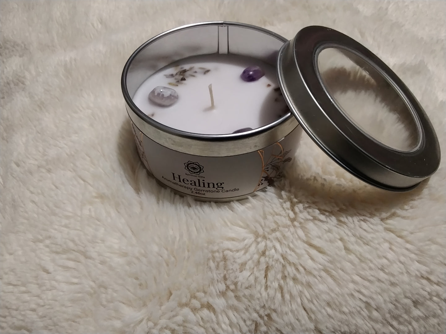 Laisse la flamme diffuser le parfum doux de lavande tout en ressentant l’énergie apaisante de l’améthyste.