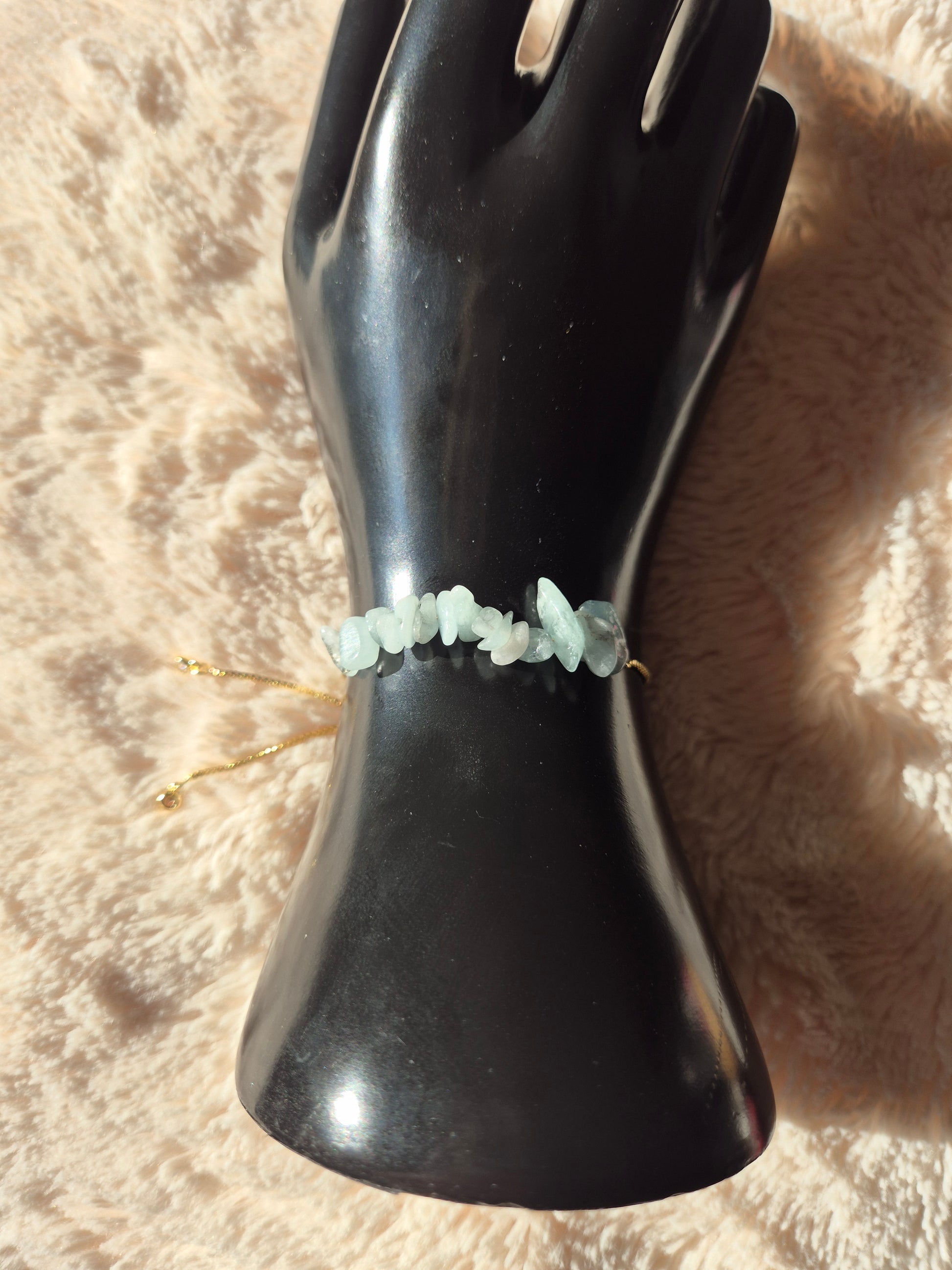 bracelet sur chane acier inoxidable aigue marine ou quartz blanc.