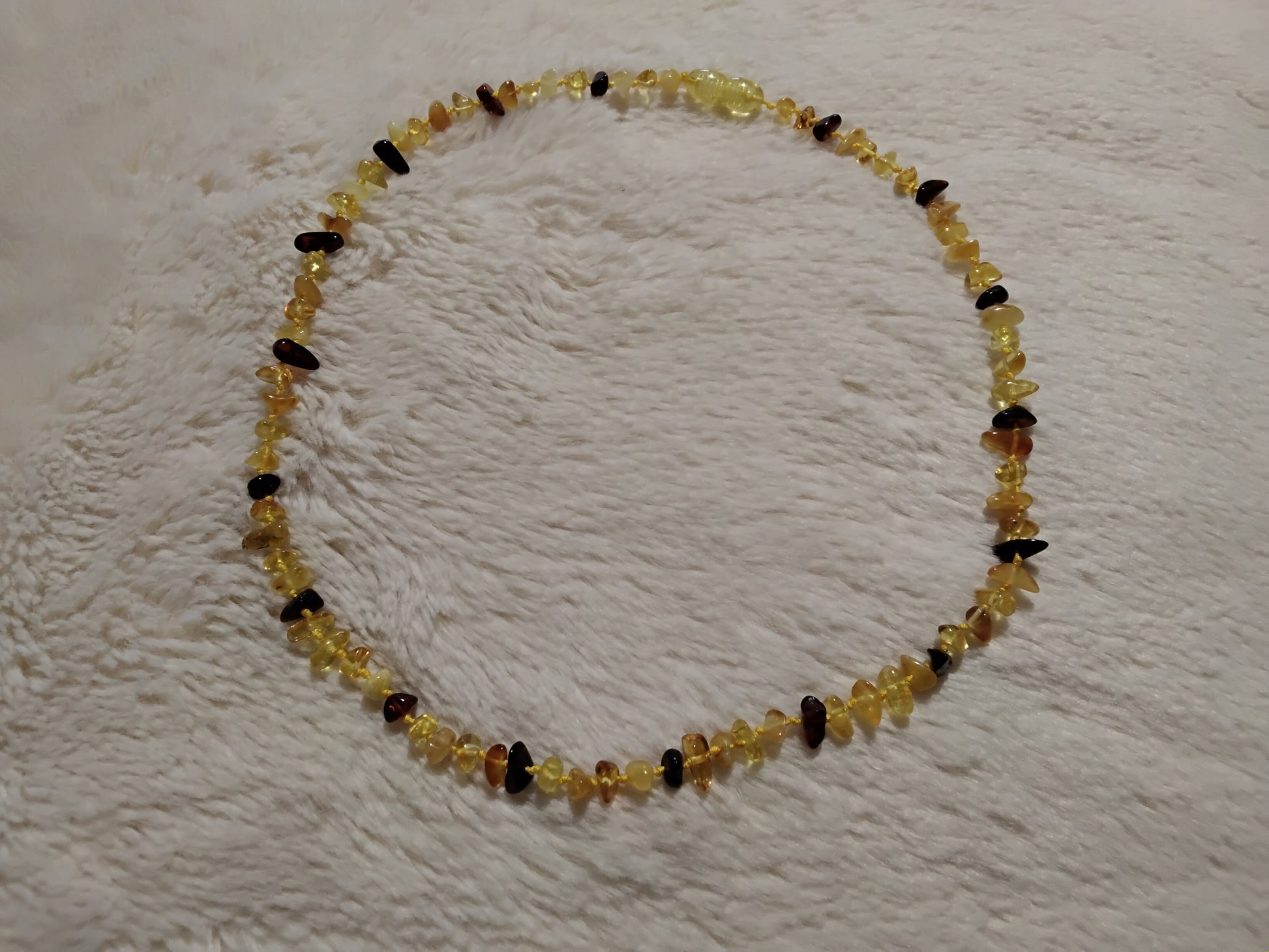 Ce collier en ambre naturel de la Baltique et cognac, d’une longueur de 30 cm est soigneusement conçu pour offrir le bien-être pour l’enfant. Chaque perle d’ambre est minutieusement polie afin de préserver sa beauté authentique et ses reflets chaleureux.
