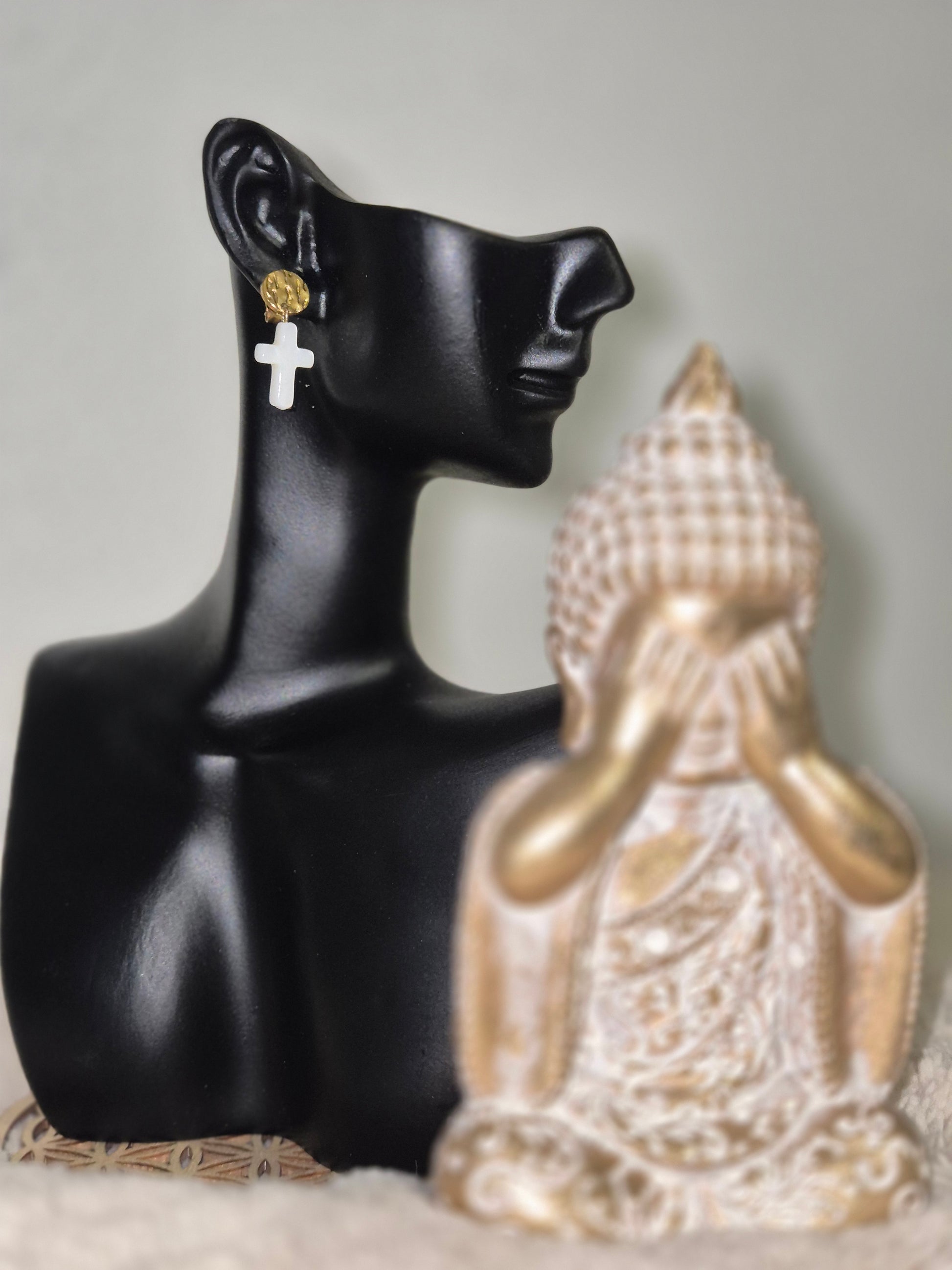 Éclat de foi boucles d’oreilles croix nacre naturelle