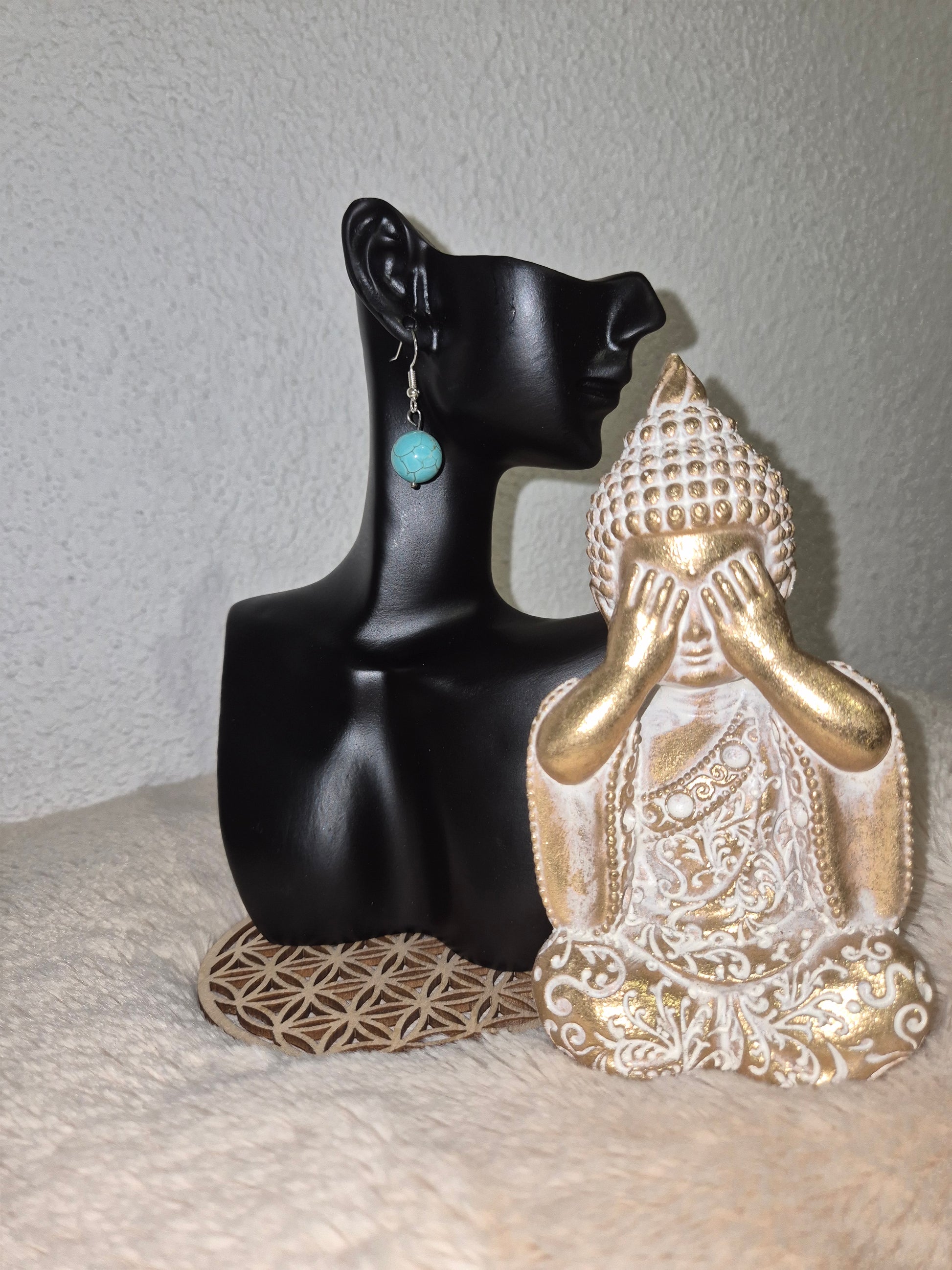 Légères comme une brise marine, ces boucles d’oreilles dévoilent une perle de Howlite turquoise, éclat doux et apaisant. Elles capturent la sérénité des vagues et la poésie des ciels clairs, accompagnant vos gestes d’une élégance naturelle et intemporelle