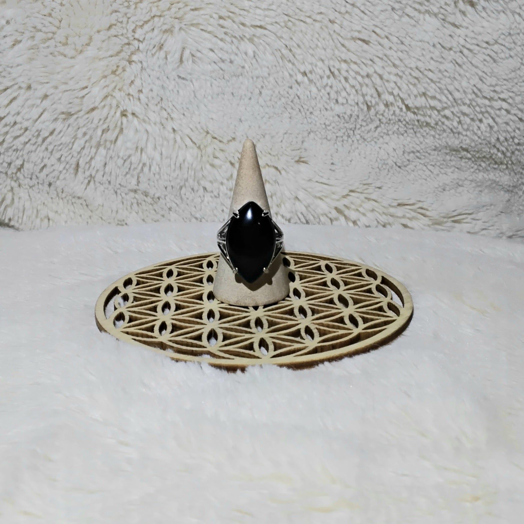 Son anneau réglable s’adapte facilement à toutes les tailles de doigts, offrant confort et élégance au quotidien. Le contraste entre la brillance du métal et la profondeur du noir crée un bijou à la fois moderne, mystérieux et intemporel.
