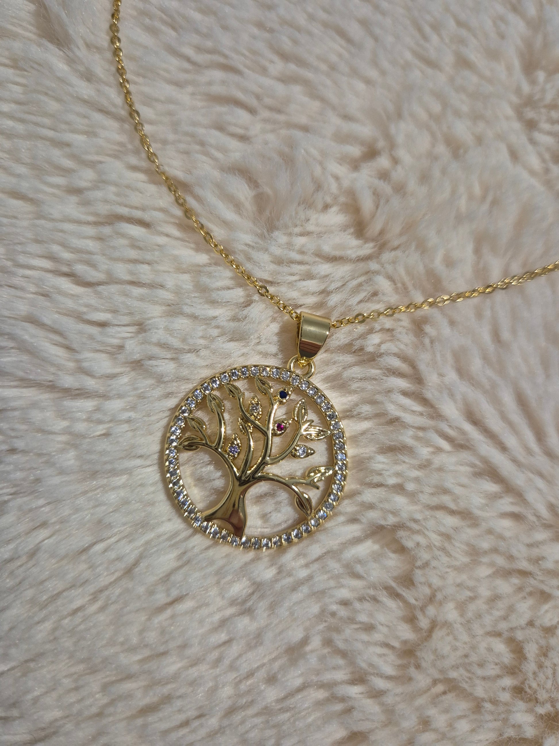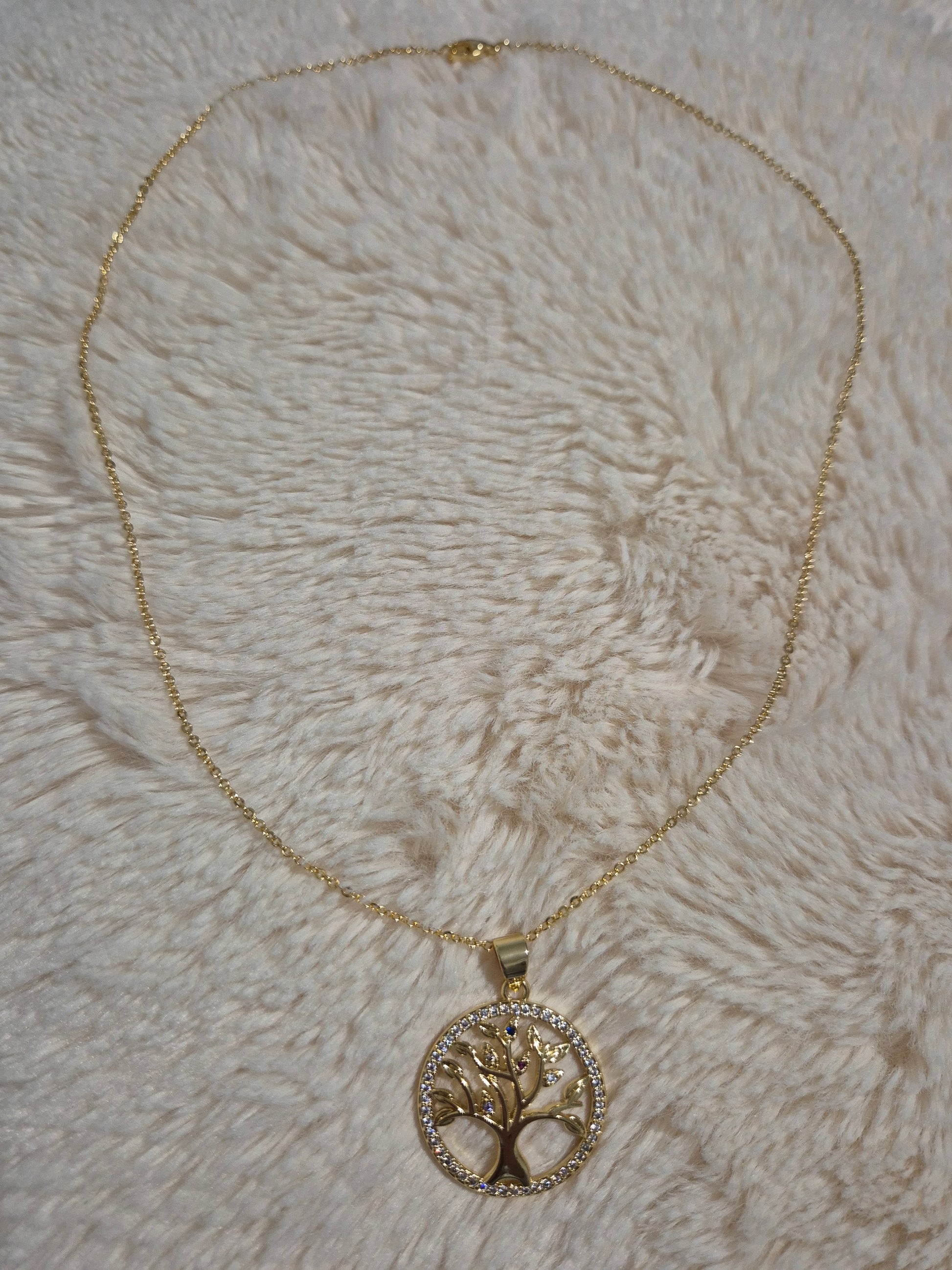 Laissez-vous envoûter par l’éclat délicat de ce collier plaqué or 1 micron, sublimé par un pendentif Arbre de Vie finement ciselé. Symbole de renaissances, de liens précieux et d’énergie protectrice, l’Arbre de Vie se pare ici de zirconiums étincelants, tels de petites étoiles accrochées à ses branches dorées.