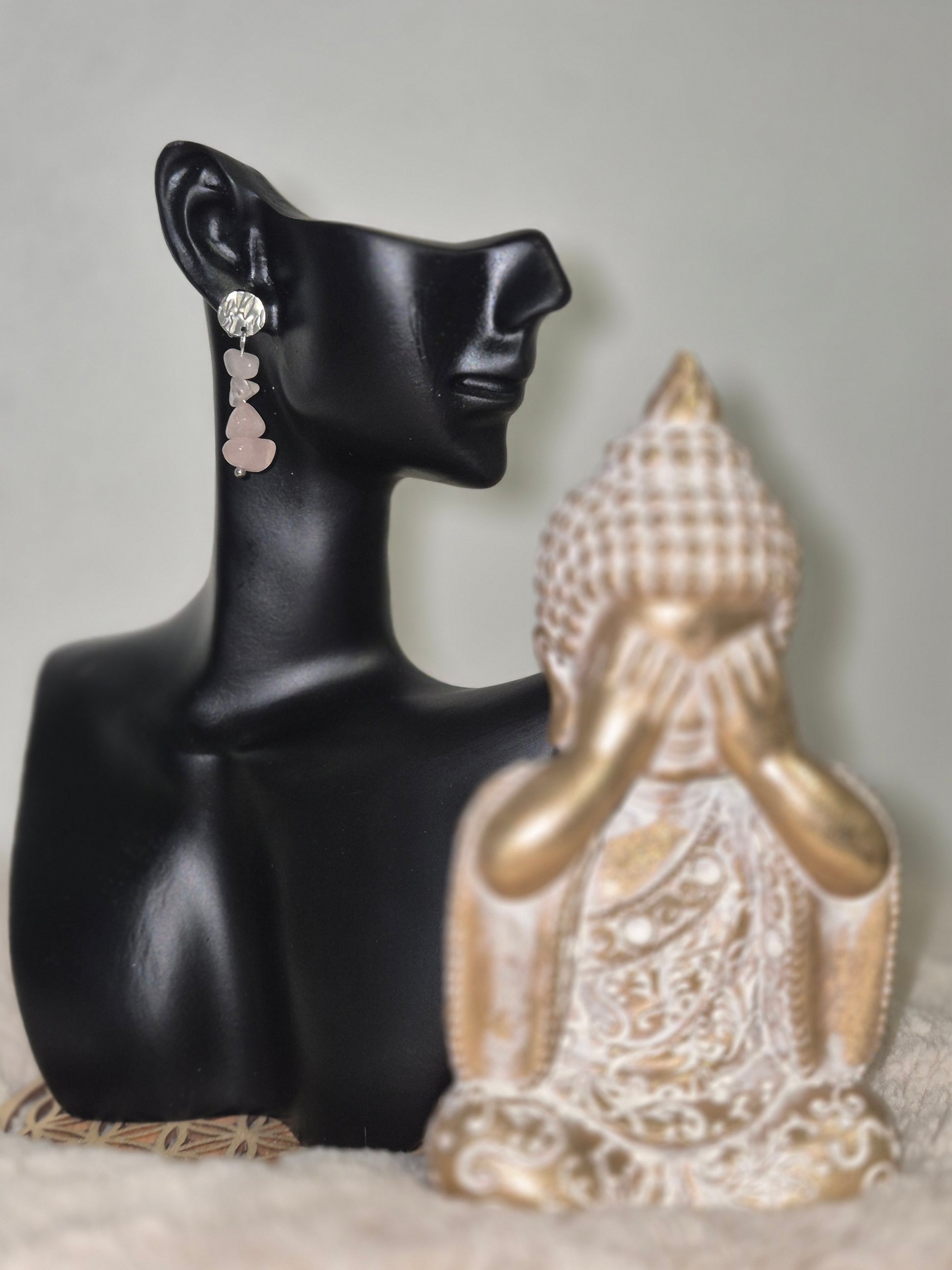 Raffinement intemporel Boucles pendantes pierre quartz rose