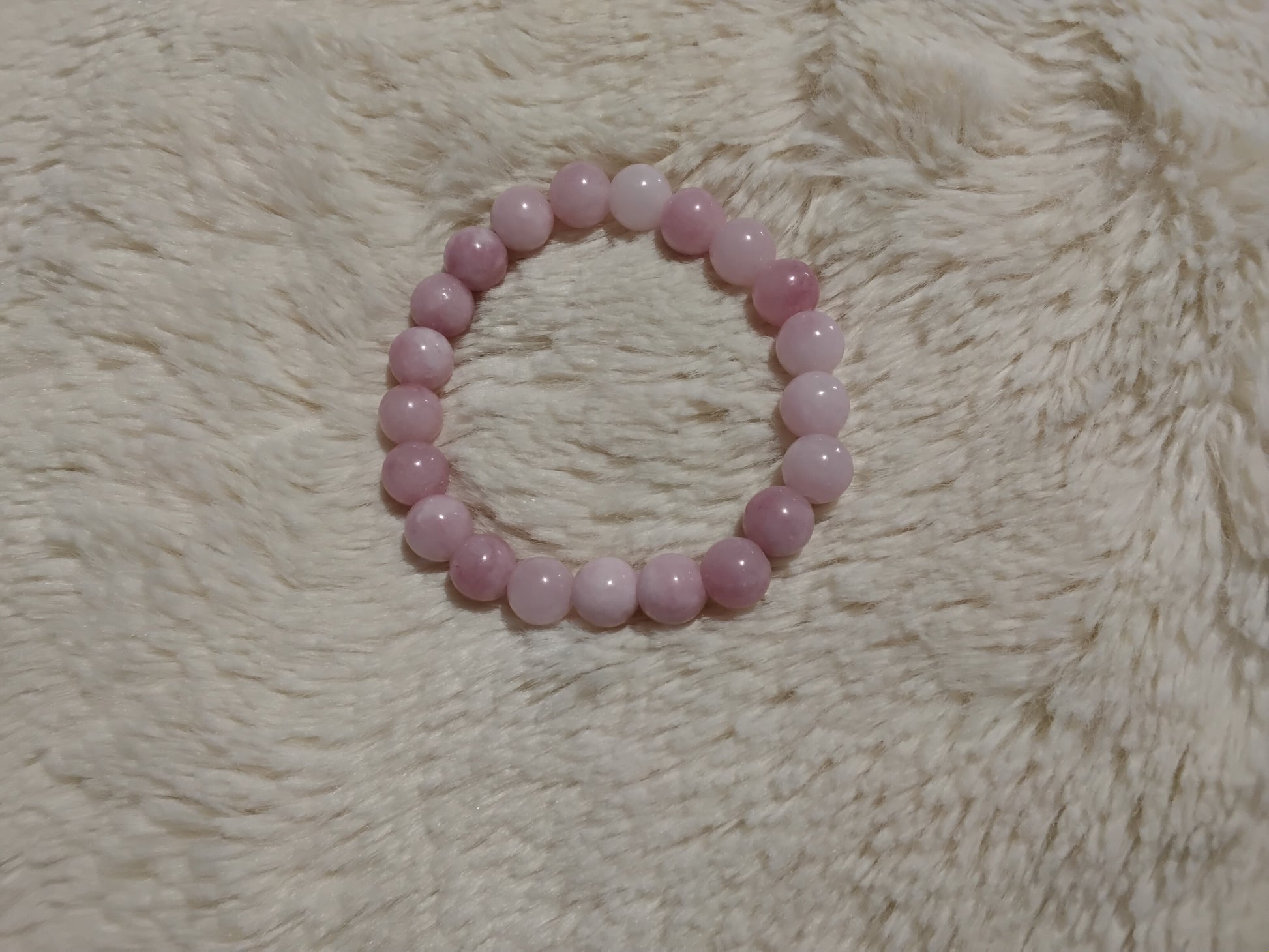 Plongez dans une énergie de calme et de tendresse avec ce bracelet en pierres naturelles de kunzite, pierre précieuse reconnue pour sa vibration apaisante et sa connexion profonde au chakra du cœur.